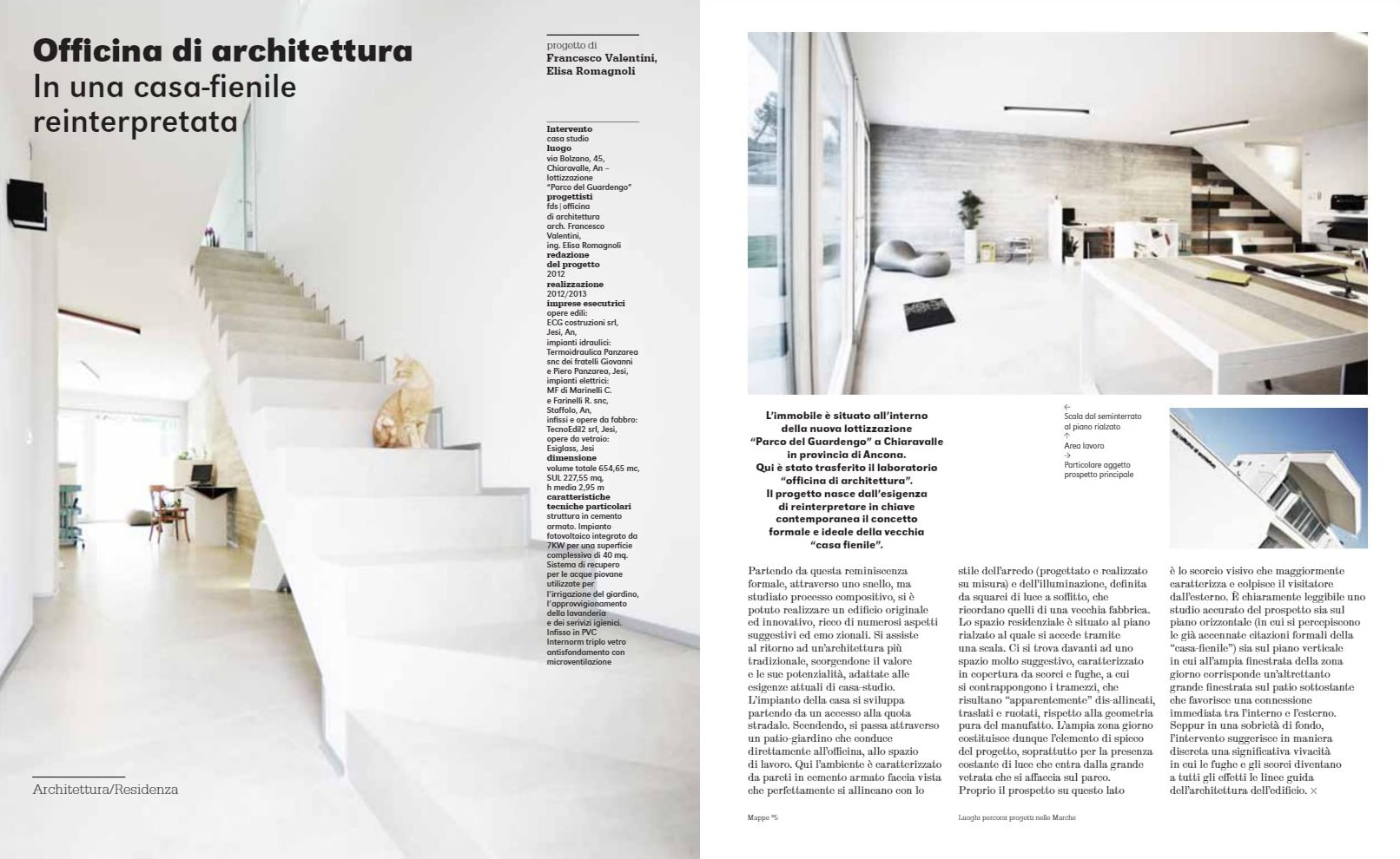 L’immobile è situato all’interno della nuova lottizzazione “Parco del Guardengo” a Chiaravalle in provincia di Ancona. Qui è stato trasferito il nostro laboratorio, la nostra officina di architettura. Il progetto nasce dall’esigenza di reinterpretare in chiave contemporanea il concetto formale ed ideale della vecchia “casa fienile”. Attraverso uno snello, ma studiato processo compositivo. Partendo da questa reminiscenza formale, si è potuto realizzare un edificio originale ed innovativo, ricco di numerosi aspetti suggestivi ed emozionali. mappe